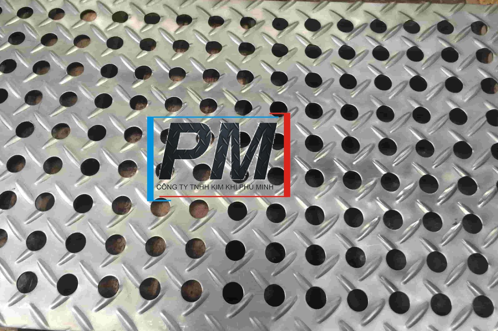 Chúng tôi thiết kế, gia công mặt sàn chống trượt dạng lỗ tròn.