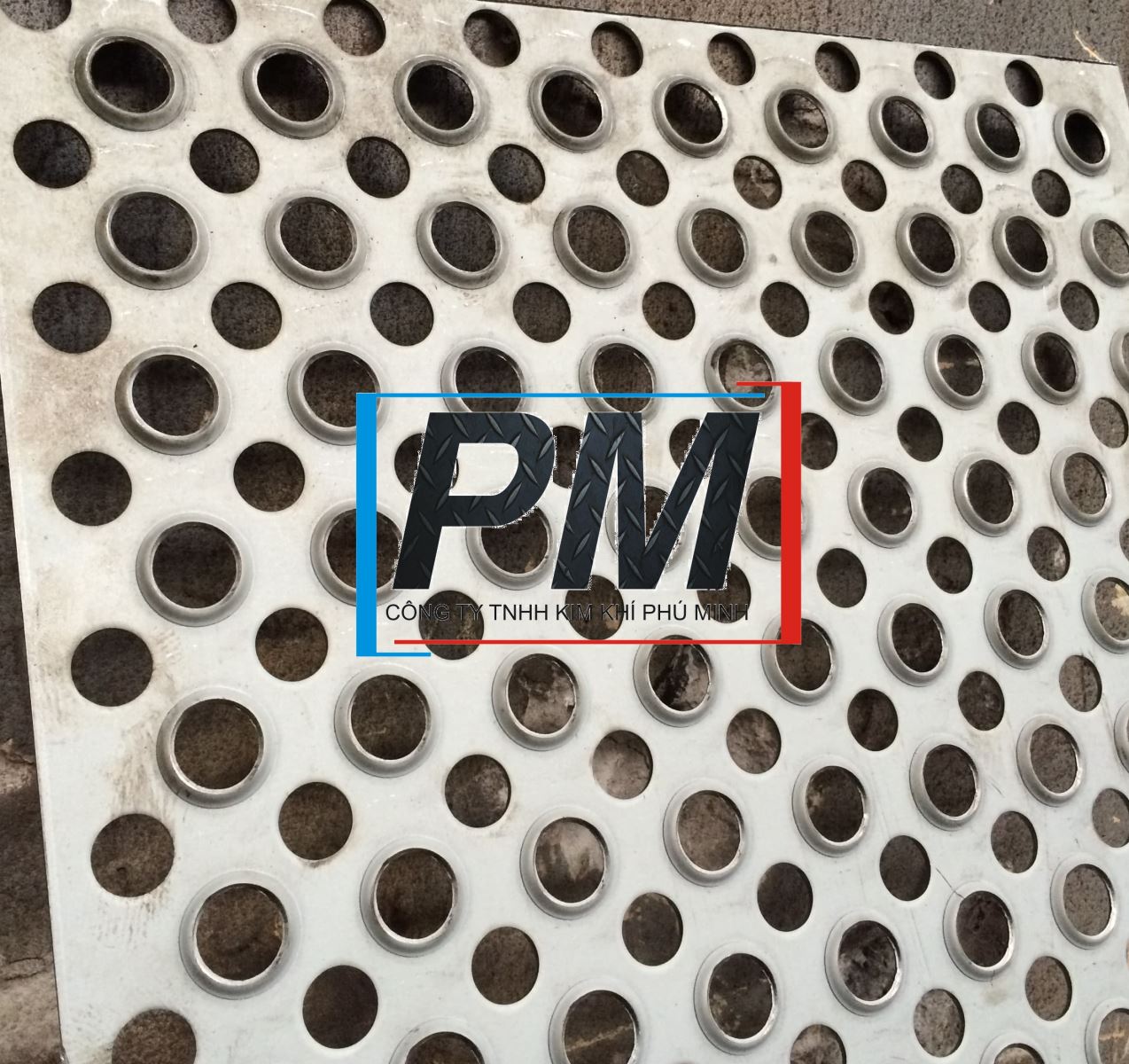 Chúng tôi thiết kế, gia công mặt sàn chống trượt dạng lỗ tròn.